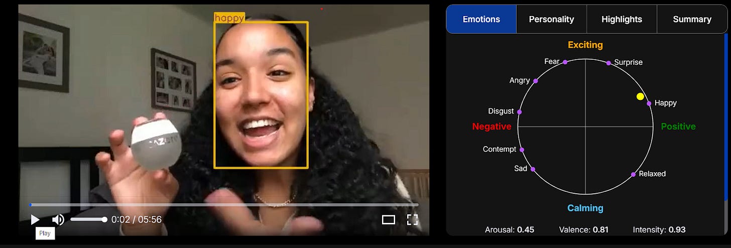 Customer Feedback Analysis: Brands can analyze videos of customers trying out products during in-store trials, virtual try-ons, or unboxing videos on social media. By identifying emotions like happiness, surprise, or disappointment, brands gain a deeper understanding of how products make customers feel.